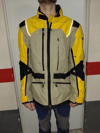Material: Confeccionada con una mezcla de poliéster-algodón resistente a la abrasión con un acabado de cera repelente al agua. Protecciones: Incorpora protectores NPL ligeros y extraíbles en hombros y codos, con la opción de incorporar un protector de espalda NPL (reequipable). Climatización: Incluye un inserto extraíble con membrana BMW Climate, que la hace resistente al viento, impermeable y transpirable. Cuenta con un recubrimiento repelente a la suciedad y al agua. Dispone de un sistema AirVent con doble cremallera frontal y material de malla en el interior para ventilación. Ajustes y comodidad: Ajuste de anchura continuo