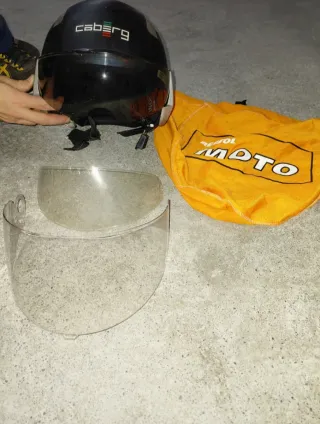 Tipo de Casco: Jet (Abierto). Marca: Caberg (Marca italiana, calidad diseño). Color: Negro Brillante. Talla: M Diseño: Estilo clásico y ligero para la ciudad Interiores El interior está desmontable (ver foto) y es de malla transpirable, lo que facilita su limpieza e higiene. Visores Incluidos Visor corto, oscuro o ahumado instalado. Visor largo transparente extra de repuesto Incluye una funda de transporte Comodidad urbana: Perfecto para subir y bajar de la moto con facilidad y para días calurosos Higiene: Interiores totalmente extraíbles y lavables #Caberg #CascoCaberg #CabergJet #MarcaItaliana #CascoJet #CascoAbierto #