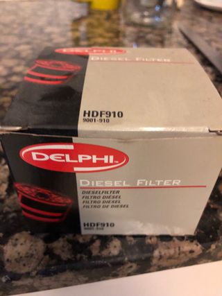 Filtro de gasoil de la marca Delphi, modelo HDF910. - Referencia: 9001-910. - Tipo: Filtro diésel.