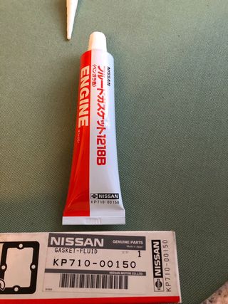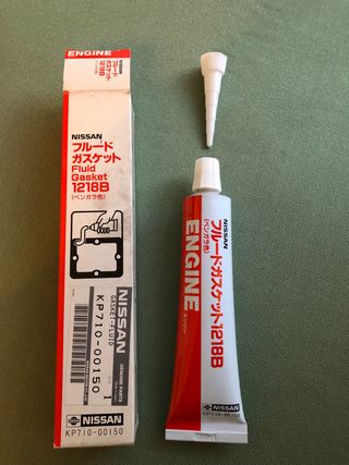 Pasta selladora para motores NISSAN. - Modelo: Fluid Gasket 1218B. - Número de pieza: KP710-00150. - Color: Rojo (ベンガラ色). - Fabricado en Japón.