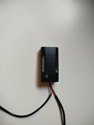 Marcador de temperatura digital KOSO para motocicletas. - Pantalla LED roja. - Carcasa negra. - Incluye sensor de temperatura de motoscoot, solamente el adaptador del sensor vale 13€ Funciona perfectamente Precio no negociable
