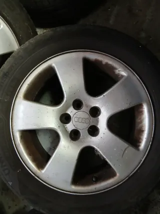 Juego de 4 llantas originales Audi A3 8L tornilleria 5x100, neumáticos se puede usar pero están al limite para cambiar. Compatibles con todos Los GRUPO VAG , SEAT,AUDI,SKODA,VOLKSWAGEn