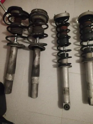 Conjunto de amortiguadores y muelles para BMW E60. - Amortiguadores delanteros y traseros. - Muelles helicoidales. - Componentes de suspensión.