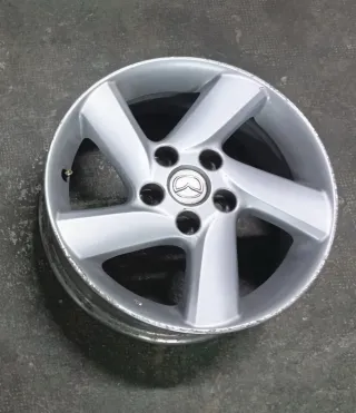 Llanta de aleación para Mazda con un diseño de 5 radios. El centro presenta el logo de la marca. - Diseño de 5 radios. - Acabado plateado.