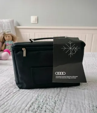 Bolsa original de Audi para productos de cuidado de invierno. - Diseño en color negro. - Incluye etiqueta con logo de Audi y símbolo de invierno. - Cremallera superior para cierre.