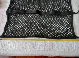 Red organizadora para el maletero del coche. Ayuda a mantener los objetos en su sitio. - Fabricada en malla elástica negra. - Incluye clips de sujeción.
