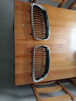 Rejillas delanteras para BMW Serie 3. Piezas de recambio con acabado cromado. - Diseño de barras horizontales. - Marco cromado brillante.