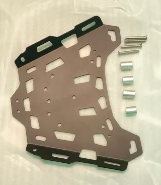 Parrilla de aluminio para Triumph Tiger 900. Diseñada para añadir funcionalidad y estilo a tu motocicleta. - Material: Aluminio. - Color: Negro mate. - Incluye tornillería y espaciadores para su montaje.