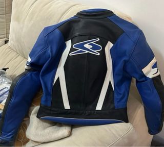 -Mono de moto de mujer Spyke -Talla S -Diseño deportivo con detalles en azul, blanco y negro. -Usado pocas veces -con protecciones en rodillas y codos (no tiene hombreras)