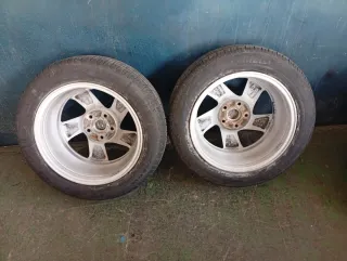 Vendo 4 llantas de chapa de BMW originales con sus correspondientes tapacubos. Están en perfecto estado con 4 neumáticos a mitad de uso. Originales de BMW E34