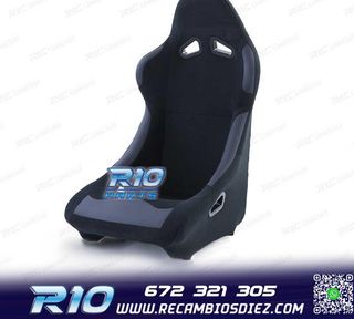Asiento deportivo tipo baquet para coche. Diseñado para ofrecer un buen agarre y comodidad. - Tapicería de tela negra. - Diseño ergonómico. - Aberturas para arnés. No se hace envio