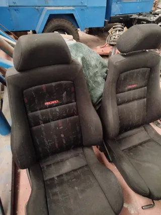 SOLO TENGO LOS DELANTEROS Recaro para Volkswagen Golf MK3 GTI abatibles 20th aniversario bien conservados. Tapicería negra con detalles en rojo y azul. Se le pueden poner a un BMW e30 sin necesidad de adaptar. (SOLO BUSCO CAMBIO POR ASIENTOS BMW E30 SPORT COUPE) Pack m, golf, mk1, mk2, recaro, omp, bride, baquet, semibaquet,