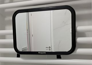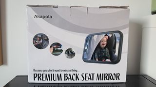 Espejo Akapola diseñado para el asiento trasero del coche, permitiendo ver al bebé. Sin estrenar aún conserva el plástico protector. - Marca: Akapola - Tipo: Espejo retrovisor para asiento trasero - Diseño: Premium Back Seat Mirror - Medidas aprox. 30 x 20 cm.