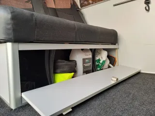 Mueble hecho a medida para Fiat Doblo. - Hecho por Camperland en 2017. - De madera de pino, la base que se dobla con bisagras para hacer de somier está fenestrada y así hacerlo más ligero. - Peso 35kg. Fácil de poner y quitar del maletero si se necesita la furgo para otra cosa. Cabe perfecto en el maletero junto con el colchón y queda tapado, no se ve por fuera. - Se hace sofá y mesa también. - Fácil de montar. Se reclinan los asientos traseros y delanteros y tienes una cama de 1,35x2m. Muy cómodo para dos personas. - Precio original 1100€. - Lo vendo porque hemos tenido un bebé y no lo voy a poder disfrutar en un tiempo.