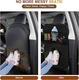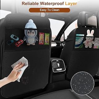 Protector de respaldo de asiento para coche, ideal para niños. Mantén el coche limpio y organizado. Bolsillos grandes, material resistente y fácil de limpiar. Se instala en minutos. Producto nuevo. Entrega rápida en España. - Cuenta con tres prácticos bolsillos para organizar objetos. - Diseñado para proteger el respaldo del asiento de manchas y rozaduras.