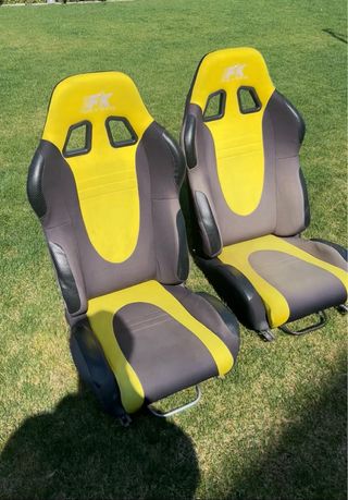 Precio por la pareja. Par de asientos deportivos FK Automotive en color negro y amarillo. - Diseño tipo Recaro. - Tapicería bicolor. - Logos FK Automotive visibles.
