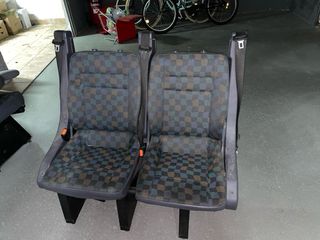 Se venden dos asientos traseros de Volkswagen Multivan T4, en buen estado. Incluyen tres reposacabezas a juego. Los asientos presentan un desgaste normal por el uso, pero se encuentran en condiciones aceptables. - Dos asientos traseros. - tres reposacabezas. - Tapicería gris con rayas. - Perfectos para una T4.
