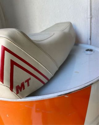 Asiento para Derbi Variant Star con logo MT. - Color blanco roto. - Diseño con detalles en rojo. - Acabado en polipiel.