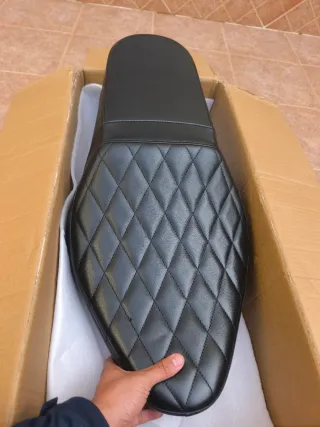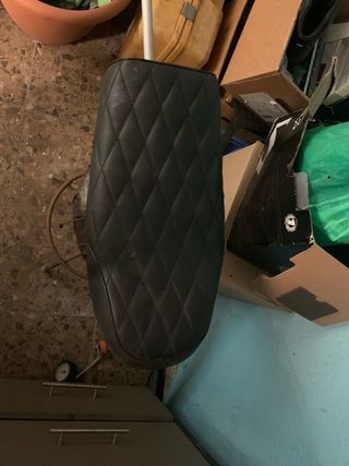 Asiento de moto estilo clásico / café racer Asiento de moto en muy buen estado, tapizado en cuero sintético negro de alta calidad. Diseño clásico con costuras horizontales y banda central perforada, ideal para motos retro, café racer, scrambler o custom. ✔ Asiento en dos niveles (piloto + pasajero) ✔ Cómodo y bien acolchado ✔ Estilo vintage / clásico ✔ Perfecto como recambio o para proyecto custom Compatible con motos tipo Honda CB, Yamaha SR, Kawasaki W, Royal Enfield, Triumph, entre otras (revisar medidas y anclajes). Se vende tal cual aparece en las fotos.
