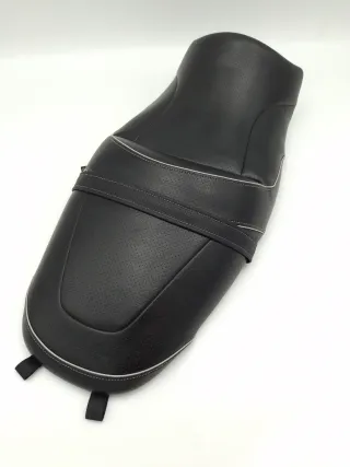 Asiento de la SUZUKI V-STROM 650 DL del 2009. Rebajado 2-3cm y con gel en el asiento del piloto y del acompañante. Tapizado antideslizante nuevo. Características y modificaciones: - Material: Polipiel - Color: Negro - Rebajado 2-3cm - Con gel en asiento del piloto + acompañante - Tapizado antideslizante nuevo