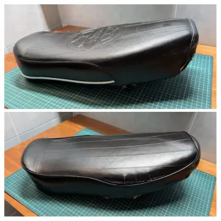 Funda de asiento para Vespa GTS en color negro con un elegante ribete blanco. (Solo es la funda , para grapar al asiento) lo que es la piel exterior No tiene daños ni picotazos Ideal para tapizar tu asiento dañado - Diseño bicolor. - Material duradero .
