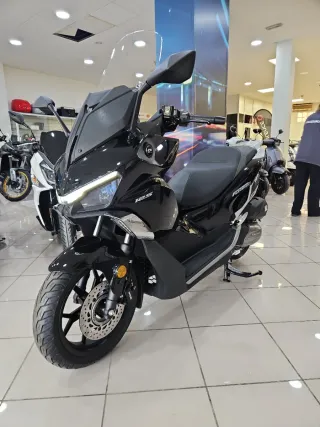 Maxiscooter QJ MOTOR FORT 125cc en color negro. Diseño moderno y deportivo. - Motor de 125cc. - Transmisión automática. - Cómodo asiento para dos personas. - Amplia pantalla parabrisas.