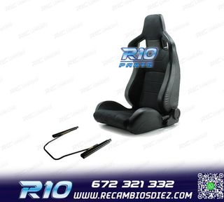 Móvel: 672 321 332 - Referencia: RLC024025. ASIENTO DEPORTIVO SEMI BAQUET ESTILO RS CUERO NEGRO SEMI PIEL Válido para: Universal Válido para todos los modelos Especificaciones: Modelo: Look RS Acabado: Semi piel Color: Negro Costura: Negra Esqueleto metálico Abatibles Respaldo regulable con acabado carbono Guias y soportes no incluidos Montaje. Adaptable a cualquier vehículo (puede ser necesario montar bases específicas) Acabados. Se seleccionan los mejores materiales para su fabricación Imagen. Dale un toque más fresco y deportivo al interior con este asiento RS
