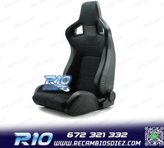 ASIENTO DEPORTIVO SEMI BAQUET ESTILO RS ALCANTARA CUERO NEGR