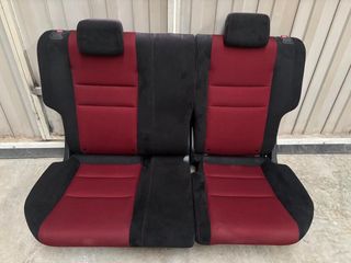 Conjunto de asientos traseros para Honda Civic Type R FN2. - Tapicería en tela roja y negra. - Reposacabezas integrados.