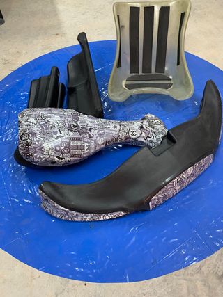proyecto de caferacer hecho en fibra, y un depósito de ducati monster.