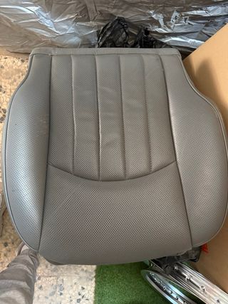 Asiento delantero izquierdo para Mercedes CLS W219 en cuero gris . piel perforada, con ligero desgaste de pintura, sin grietas o arrugas (solo perdida de color por roce) asiento calefactado y refrigerado en perfecto estado, el sensor del airbag perfecto. el cajón funciona bien solo se vende lo que se ve en la foto. se cambia muy facil, 2 tornillos y 4 cables.