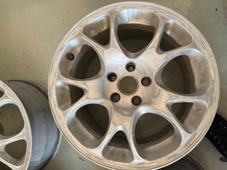 Juego de cuatro llantas -Con 4 separadores de 2,5 para buje de 57 -trasera ET60 -Delanteras ET55 están lijadas y listas para pintar -Doble medida delantera y trasera -Tornillería 5x112