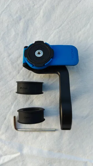 Soporte Quad Lock PRO para manillar de bicicleta o moto, con adaptadores. Incluye: - Soporte Out Front Mount PRO con adaptadores de 25.4mm y 22mm. - Llave Allen para instalación. - Soporte para potencia/manillar con juntas tóricas (2 pequeñas y 2 grandes). ¡Atención! Para poder usar los soportes con tu teléfono móvil, necesitas Funda compatible o adaptador universal pegado a tu funda