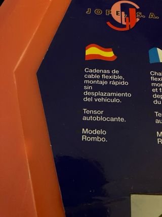 Cadenas de cable flexible para coche vehiculo sin usar. Montaje rápido sin desplazamiento vehículo. Tensor autoblocante. Modelo rombo. La transacción se realizaría cerca de la calle Orense número 28-30 de Madrid