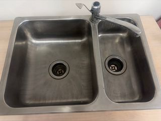 Fregadero de acero inoxidable con dos cubetas, ideal para tu autocaravana o camper. - Material: Acero inoxidable. - Diseño de doble seno. - Apto para vehículos recreativos. -medidas largo 64 ancho 46 fondo 16