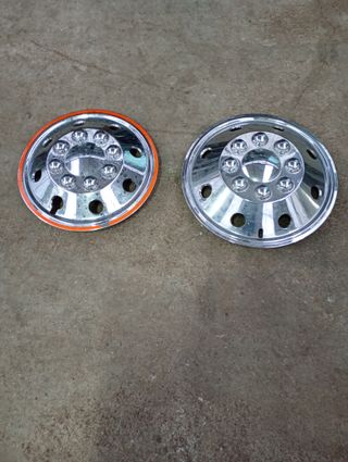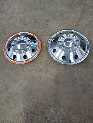 Juego de dos tapacubos para furgoneta o autocaravana. Uno 15 y Uno d 16 - Diseño cromado brillante. - Borde con detalle naranja en uno de ellos.