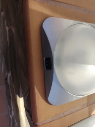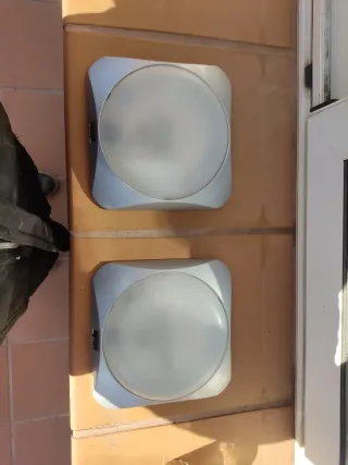 Dos plafones de luz para autocaravana o furgoneta camper. Son de forma cuadrada con una cubierta circular translúcida. Sean sacado de una autocaravana - Color: plateado y blanco. - Diseño moderno.