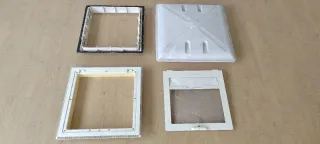 Claraboya MPK 420VNRB para autocaravana o caravana. Medidas del recorte (mm): 400 x 400. Marco exterior. Marco interior. Tapa. Marco con mosquitera. Completa pero ya co sus años y defectos. Puede servir para repuestos, etc. Se ha desmontado por cambio por otra. El agua no entraba, pero como he dicho, ya tiene sus años y defectos.