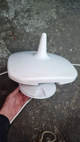 Antena omnidireccional blanca para autocaravana. Diseñada para una fácil instalación. - Base circular. - Diseño aerodinámico. - El cable esta cortado