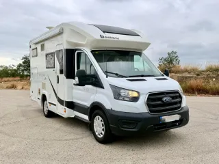 Autocaravana benimar 340 sport up 170 Ford 2.0 170cv Año 2018 35.000 km 5 plazas Calefaccion de gasoil Nevera grande Maletero grande Portabicis 4 biciletas Ducha separada Placa solar Camara marcha atras Sensores aparcamiento