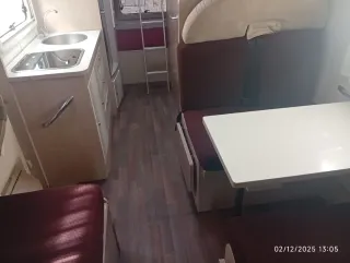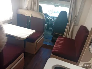 Autocaravana perfilada para máximo 6 personas, camas literas y de matrimonio, baño con ducha independiente, cocina 3 fuegos con nevera grande y congelador, gran comedor 6 plazas, navegador, cámara trasera, control cruise. Visitas con cita previa..