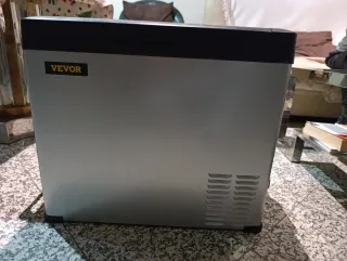 Nevera portátil VEVOR de 50 litros. Ideal para mantener tus bebidas y alimentos fríos. - Capacidad de 50 litros. - Enchufe al coche o a 220 - programable por panel o por bluetooth - Enfría mucho y mantiene perfectamente la temperatura que desees - Diseño plateado con detalles en negro. - Asa integrada para facilitar el transporte. - Rejillas de ventilación en un lateral. Perfecto para furgo camper, caravana, autocaravana, o para camping. Gran espacio y en buen estado