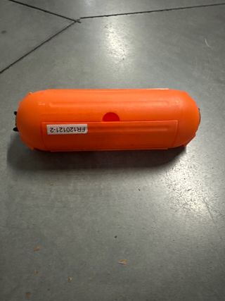 Protector de cable en color naranja, diseñado para autocaravanas. - Forma ovalada. - Etiqueta con código FR120121-2.