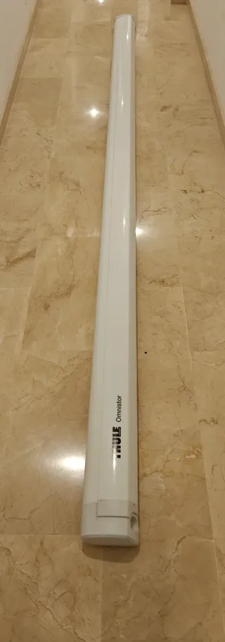Toldo para vehículos de la marca THULE, modelo OMNISTOR 5200 - Color blanco. - Se compró en Julio del 24 para la autocaravana, se usó dos salidas de una semana y luego la DANA se llevó la autocaravana. El toldo está en perfectas condiciones. Como nuevo. No le llegó el agua ni sufrió ningún golpe. Solo le falta la manivela para desplegarlo.