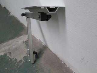 Soporte de mesa plegable para camper o autocaravana. Fabricado en aluminio y metal. - Estructura robusta y ligera. - Mecanismo de plegado. - Acabado en gris.