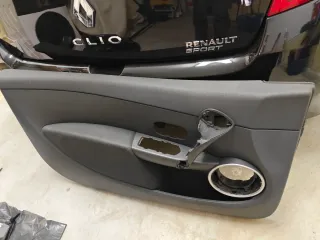 Paño de puerta para Clio 3 RS 197 203 en buen estado general. - Apto para Clio 3 Renault Sport. - Tela en buen estado, no descolgada. - Tiene un par de quemaduras pequeñas, se aprecian en la foto.