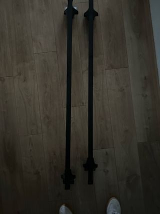 Juego de barras de techo de la marca CRUZ. - Barras de techo negras. UNIVERSALES. Barras de 121 centímetros. Enganche ver segunda foto. Con todas su tapas, tanto las barras como los soportes.