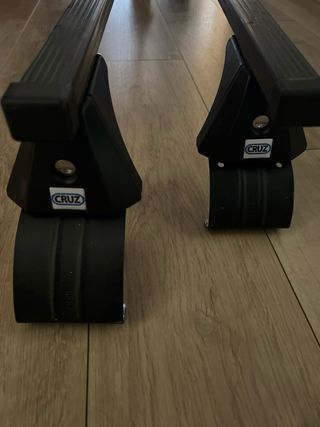 Juego de soportes para baca de coche de la marca Cruz. Se puede ver y probar sin compromiso. Atiendo al watshap 680535007 - Fabricados en metal resistente. - Diseño en color negro.