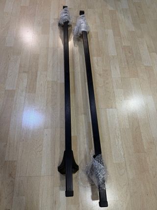 Barras de techo de la marca Cruz, ideales para transportar equipaje. - Incluye dos barras negras. - Juego de soportes de fijación. - Caja original.