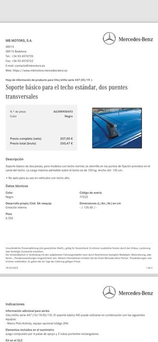 Baca para coche valida para mercedes vito